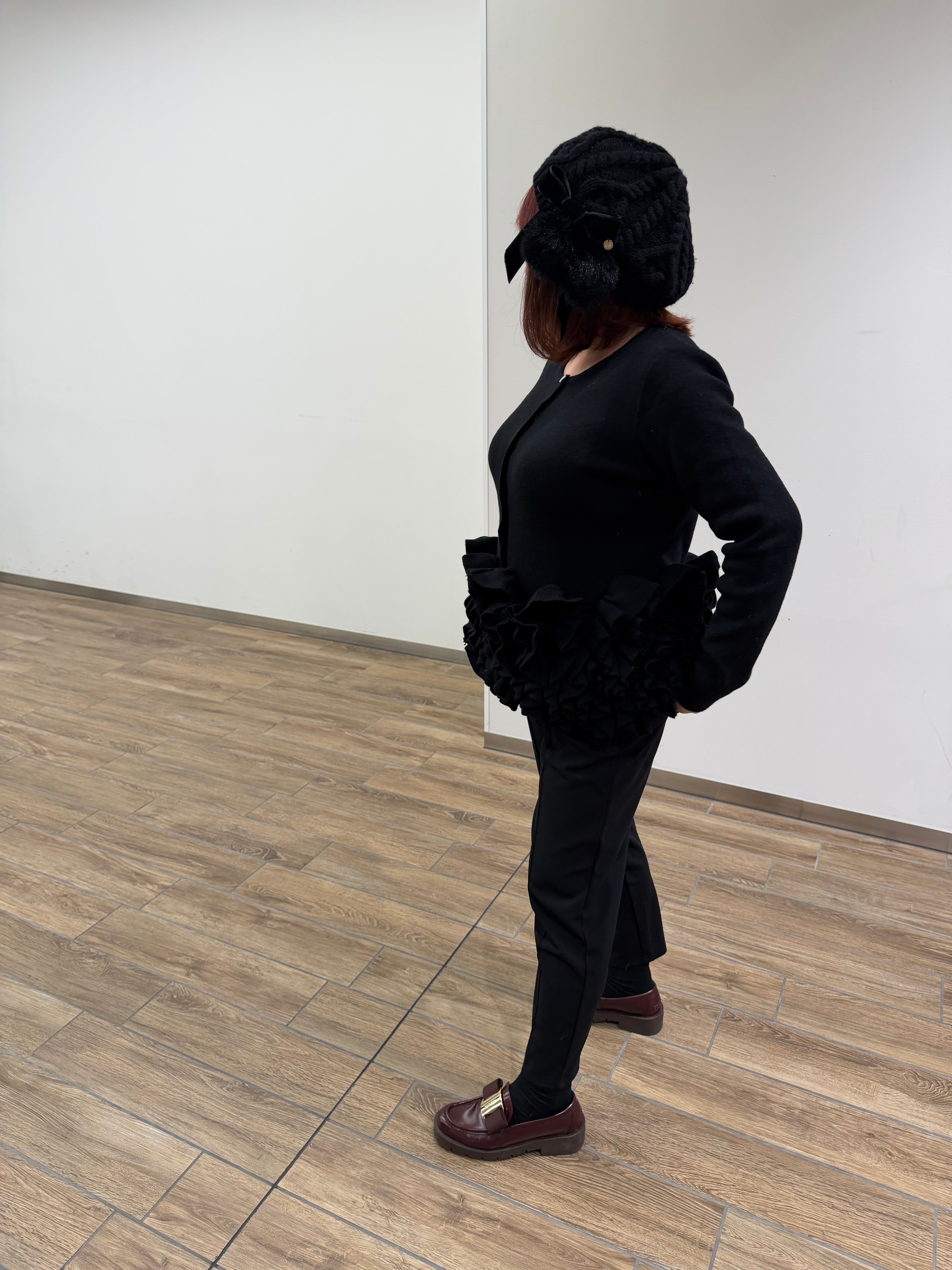ふんわりとした立体フリルが裾を彩る、華やかで上品なカーディガン✨